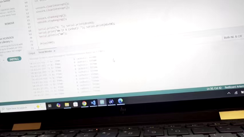 Below is a video of both sensors working in parallel. Sensor B (xShut) is the one on the left with the xShutdown wire while sensor A is on the right. (Note: ignore the music blasting in this and all subsequent videos....I didn't realize it got captured)