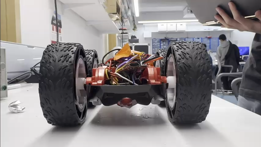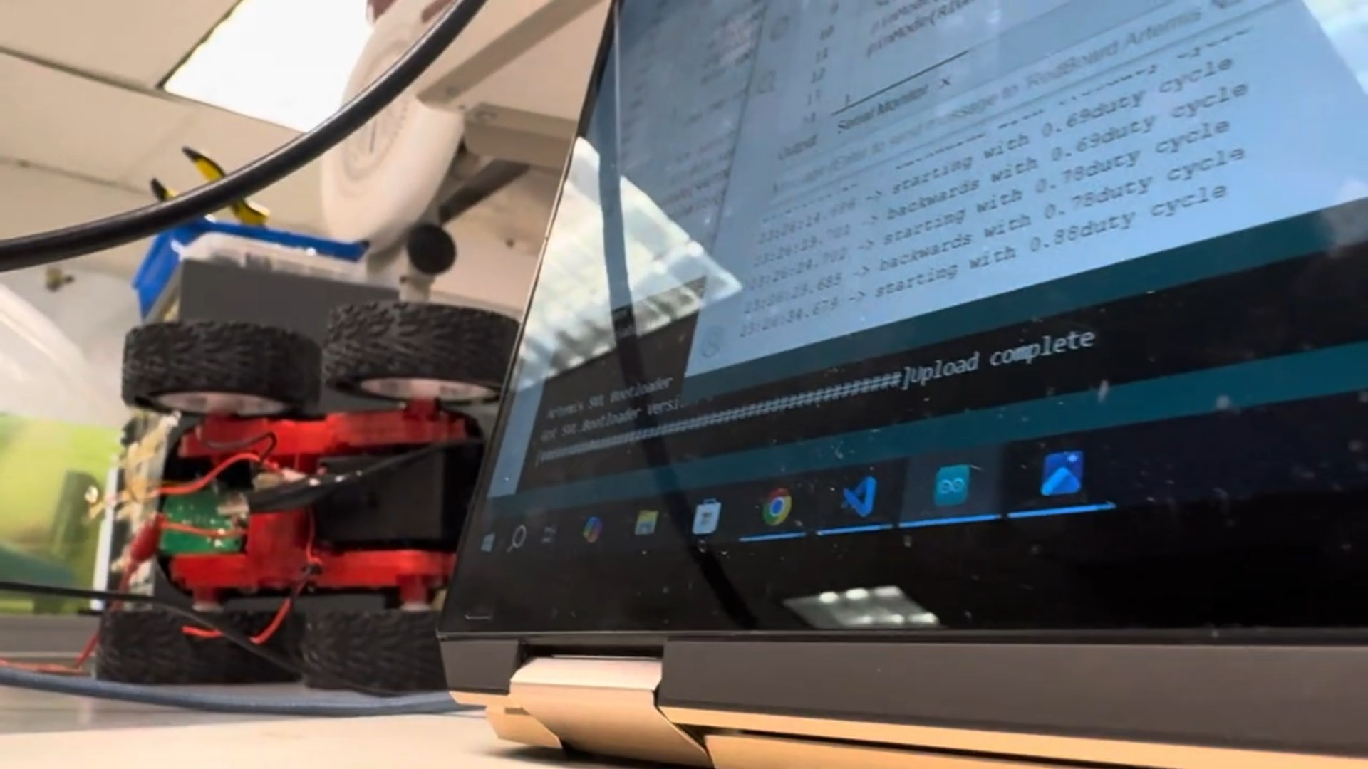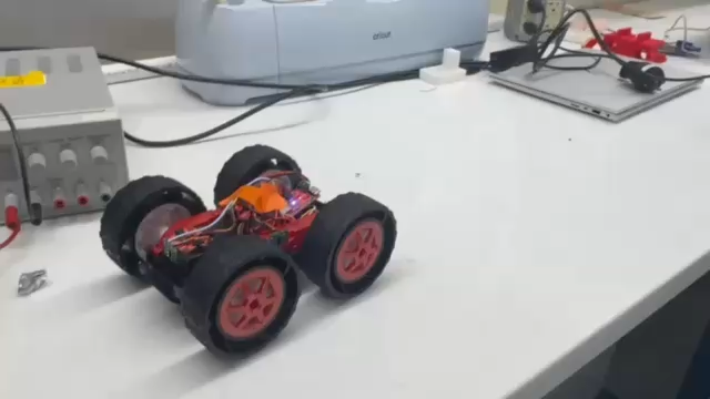 Next, we soldered the battery connections to the motor drivers to allow for completely untethered operation. This also allows us to test the motors spinning at the same time and going forwards as shown below: