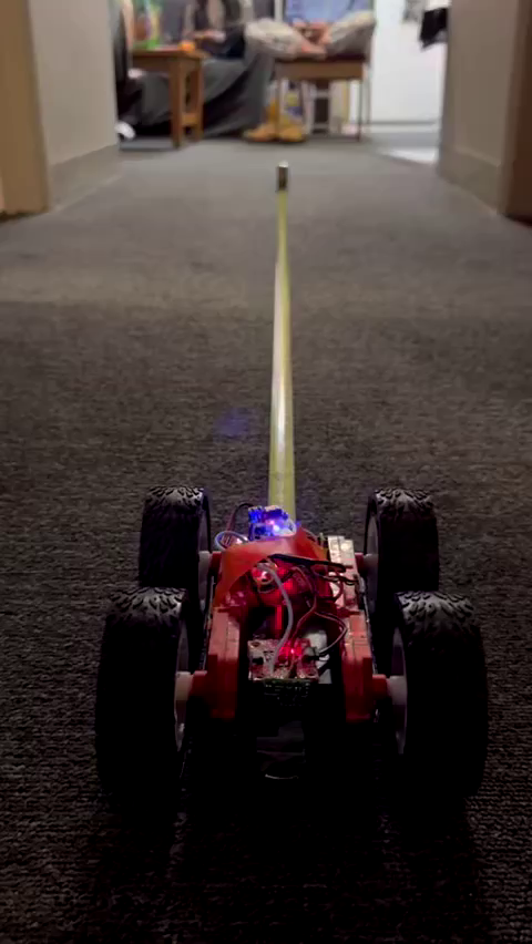 The two motors and motor drivers of the robot are not perfectly identical, so to get the robot to move in a straight line, we need to do some callibration to find the right PWM values for each motor. Surprisingly though, at the same PWM values, the robot actually moved in a pretty straight line, so I didn't have to do any callibration to get it to move straight. Below is a video of it moving in a straight line with the same PWM values of 100 for both motors and a picture of the tape measurer to show that it moved 7ft: